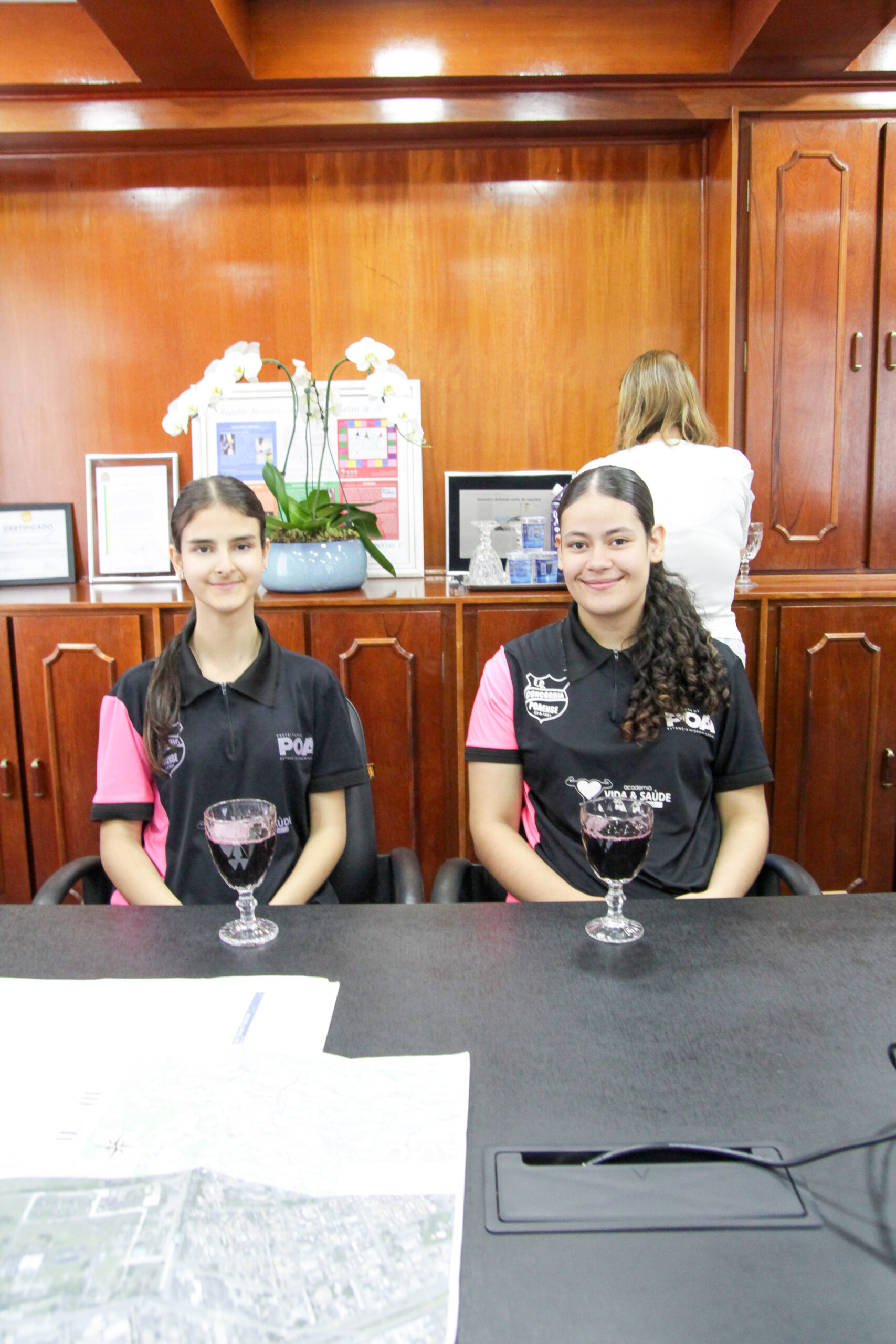 O prefeito Saulo Souza, recebeu nesta quinta-feira (4), em seu gabinete, as atletas de tênis de mesa Lívia Andrade Silva e Anna Beatriz de Angeli Pudo, alunas da Escola Estadual Batuíra que representarão, de forma inédita, Poá e o Estado de São Paulo nos Jogos da Juventude Caixa 2025.