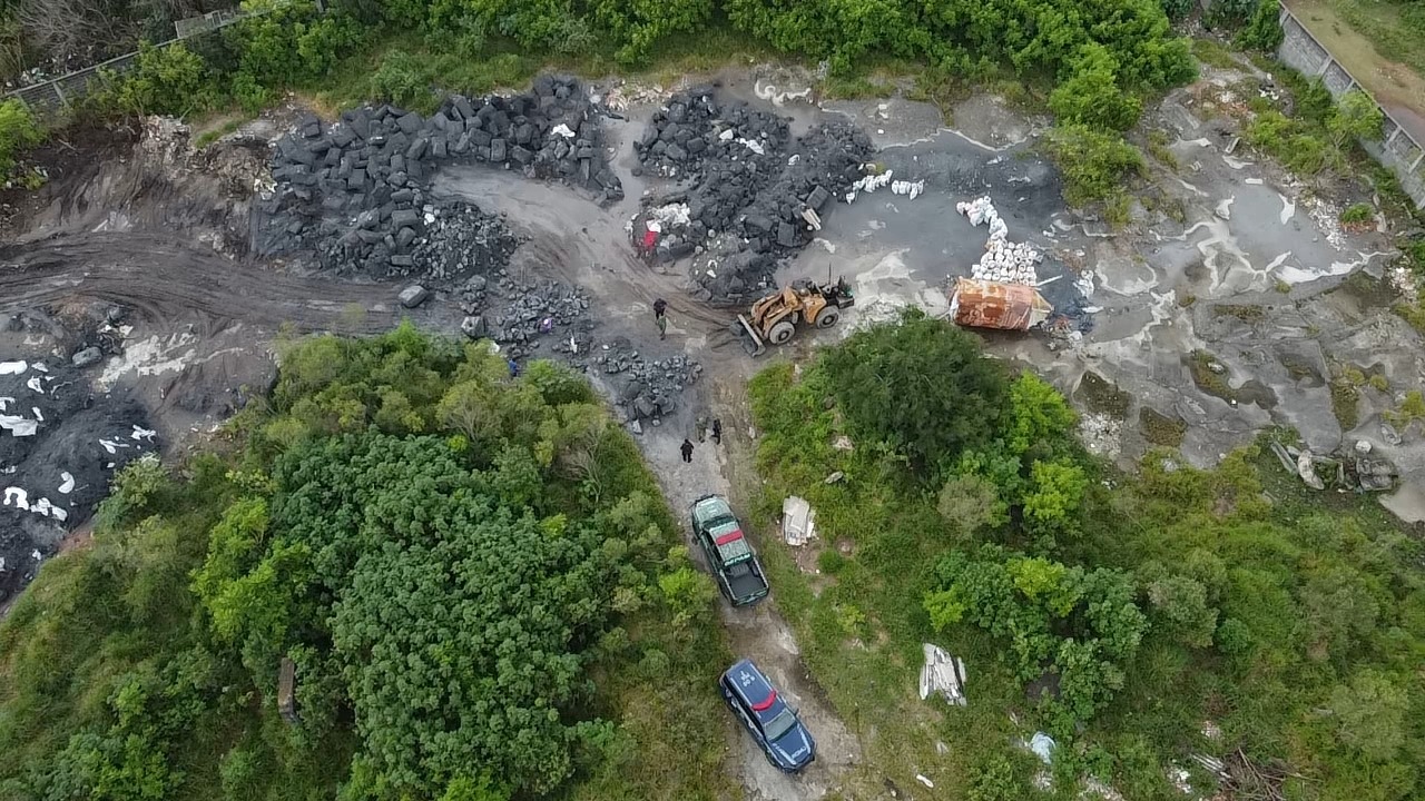 Durante patrulhamento preventivo e ostensivo pela região, a equipe ouviu barulhos de trituração de cascalhos e pedregulhos e entrou em um terreno baldio com construções abandonadas, onde anteriormente funcionava uma empresa. No local, os agentes flagraram uma grande quantidade de materiais, aparentemente relacionados à extração de alumínio e prata, sendo descartados diretamente na área de preservação ambiental.