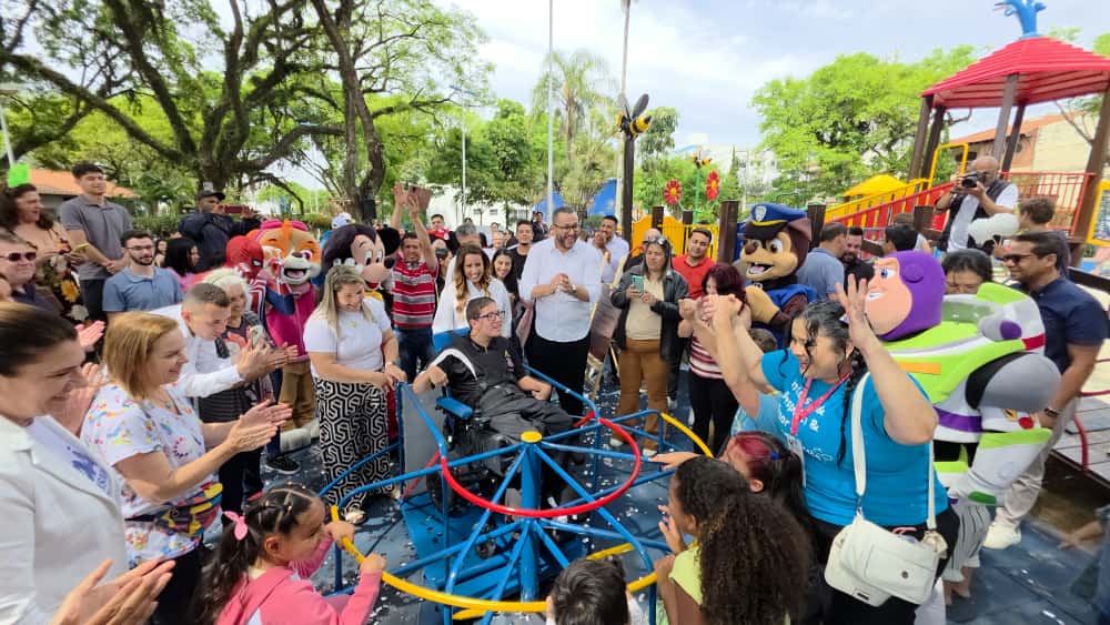 Com brinquedos adaptados, como gira-gira e balanço inclusivos, o espaço foi pensado para garantir que todas as crianças, independentemente de limitações físicas, possam brincar juntas. “Nós temos, no coração da nossa gestão, um cuidado muito grande com as nossas crianças poaenses. Além de colocar a educação delas em primeiro lugar, nesses períodos festivos não podemos deixar de garantir um sorriso no rosto de cada uma”, afirmou o prefeito.