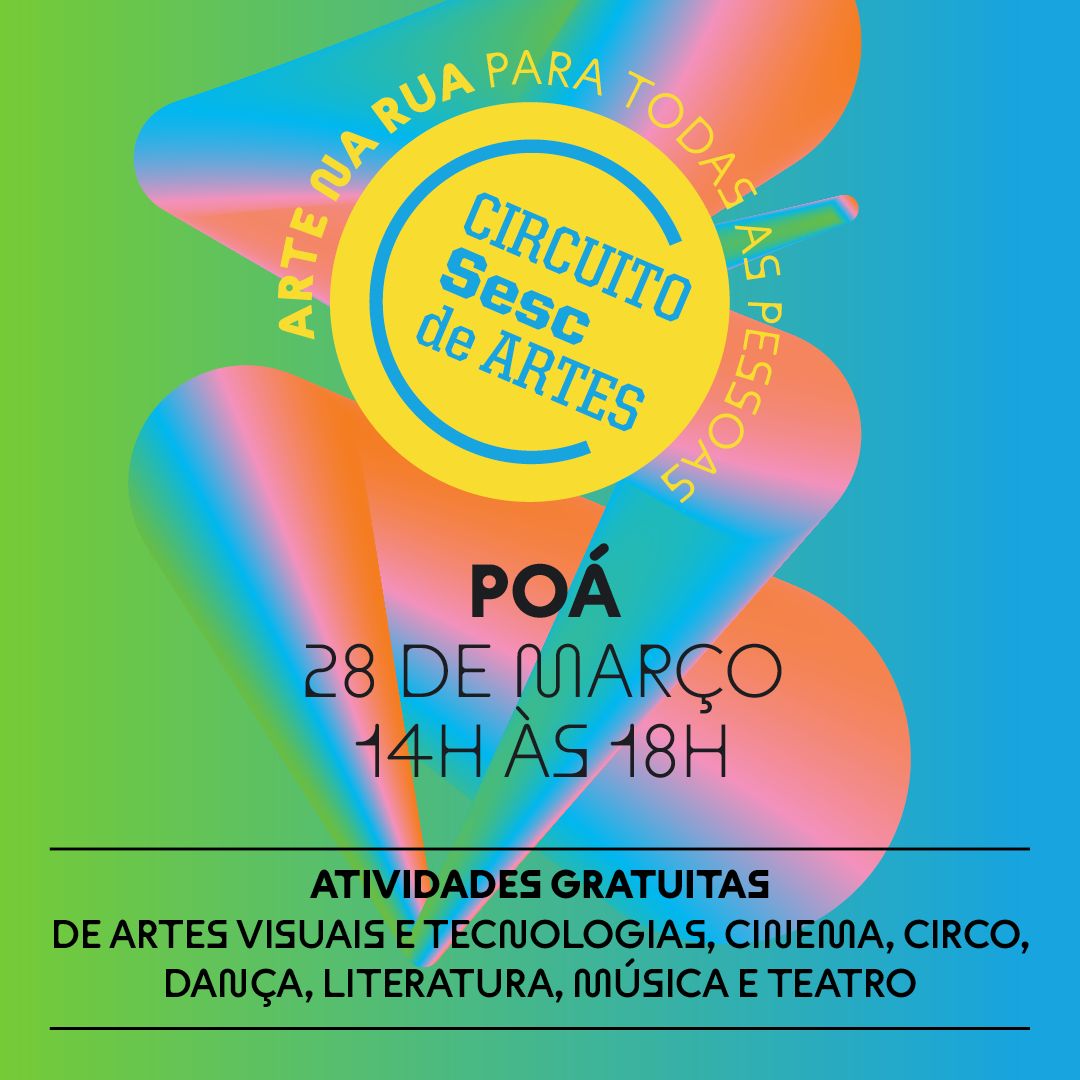 A cidade de Poá recebe, neste sábado (28), das 14h às 18h, uma programação cultural gratuita do Circuito Sesc de Artes 2026. O evento será realizado na Praça da Bíblia, no Centro, e integra as comemorações pelos 77 anos de emancipação político-administrativa do município.