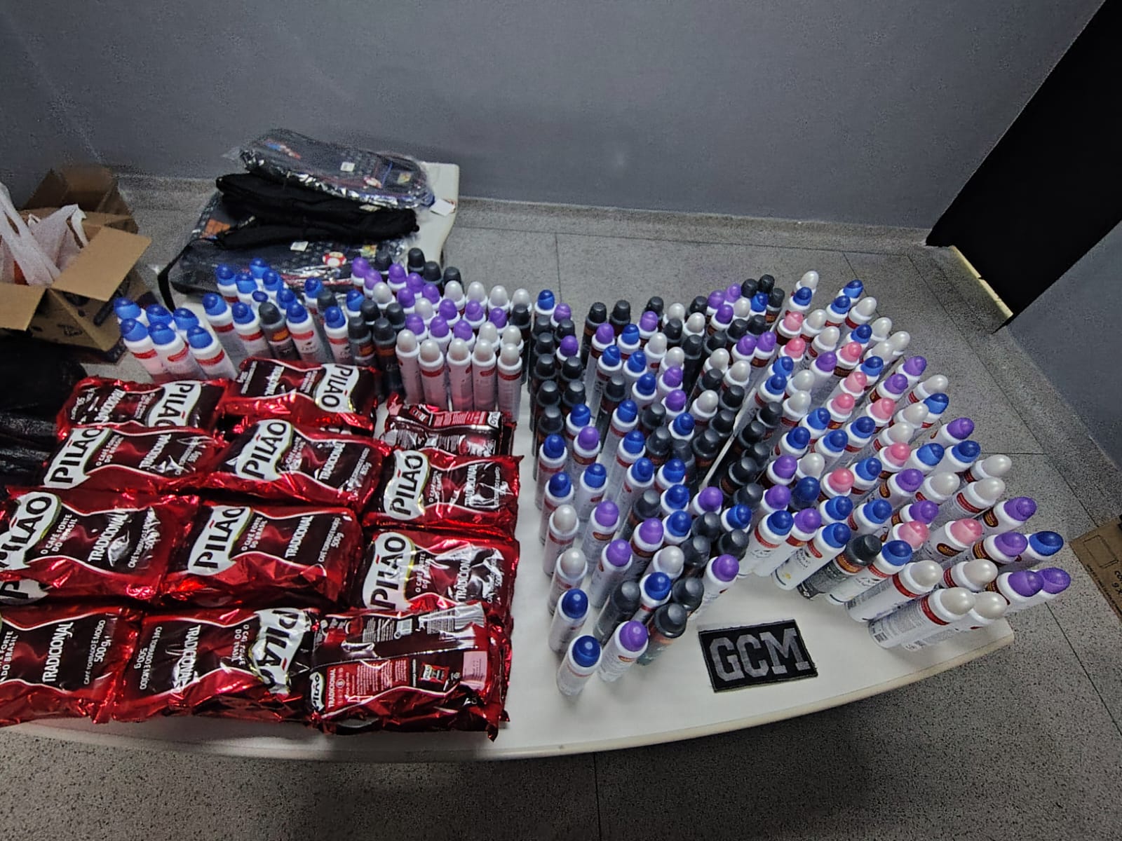 A GCM fez buscas nas proximidades e encontrou o veículo citado anteriormente, com um casal no interior, que seriam os mesmos mencionados pelo suspeito. No carro, foram localizados foram localizados 200 frascos de desodorante, avaliados em cerca de R$ 4 mil, e 40 pacotes de café, o que corresponde a aproximadamente R$ 1,6 mil.
